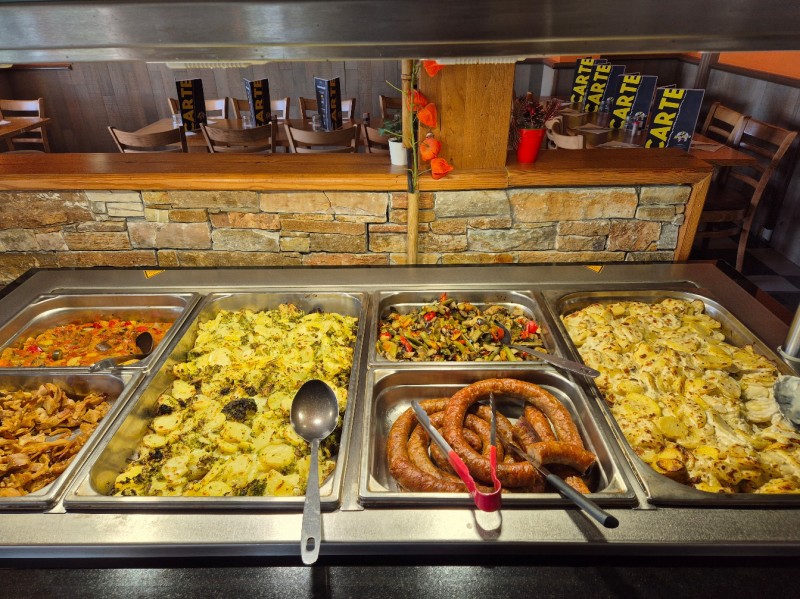 Vous trouverez différents plats traditionnels français tel que la blanquette de veau, bœuf bourguignon, gardiane de taureau, porc au caramel, merlu à la fondue de poireaux, moules marinières, sauté de bœuf, sauté de poulet forestier, jambon braisé, fish and chips, lasagnes de bœuf, pâtes carbonate, pâtes bolognaise, sauté de veau à l’échalote et bien plus encore... accompagné se riz, pâtes, gratin de pomme de terre, légumes, frites.